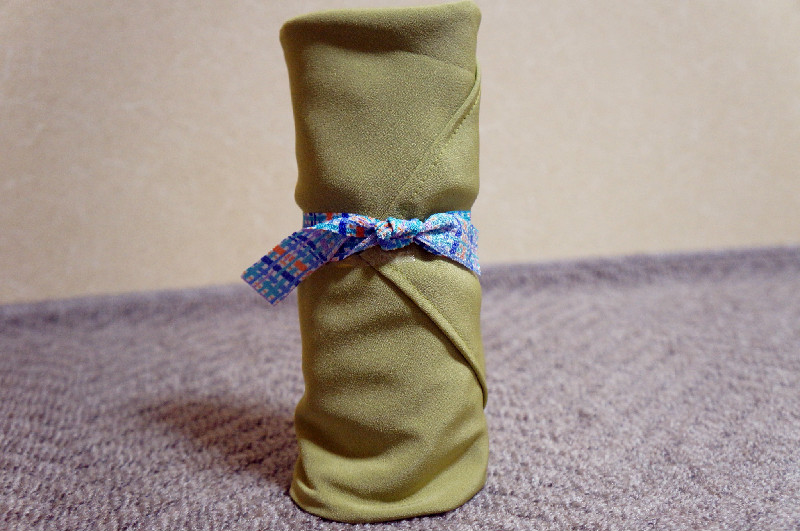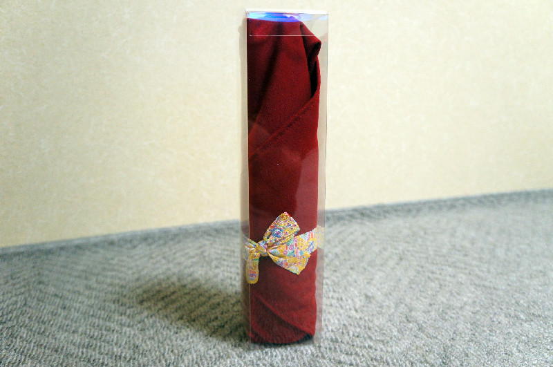 When I opened, the fabric is a tactile sensation as smooth, and it is with ribbon end.
