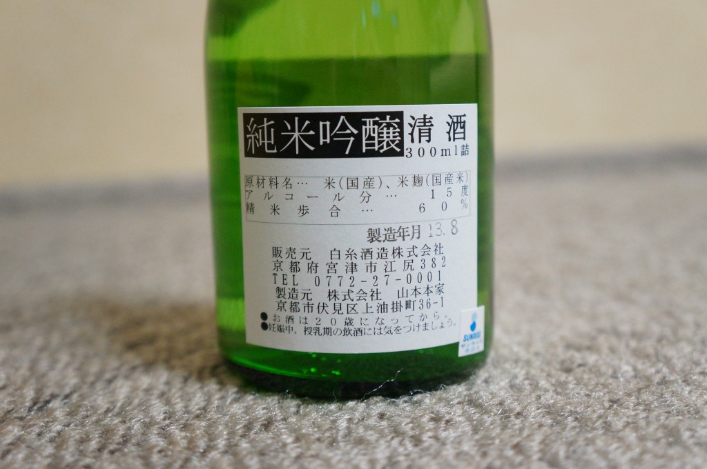 Rice (from Japan), malted rice (from Japan), alcohol content is 15 degrees, polished rice and ordered 60% raw material name is “Saiteiyarou” sake (Junmai Ginjo).