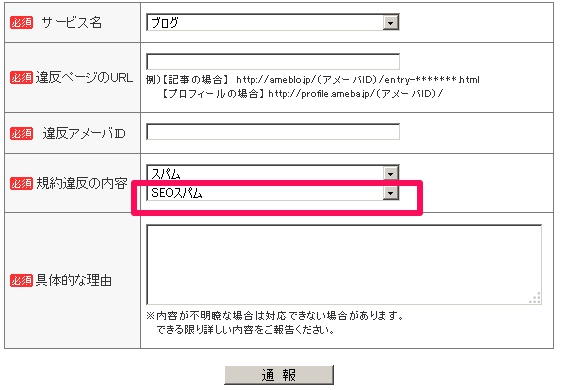 規約違反の内容で「SEOスパム」が選択可能となっており、問題のあるものは対応して頂けるとのことです。”対応”であって、必ず削除・警告ものではありません。